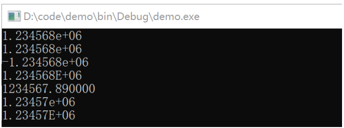 - 默认状态(%e或%E)输出六位小数