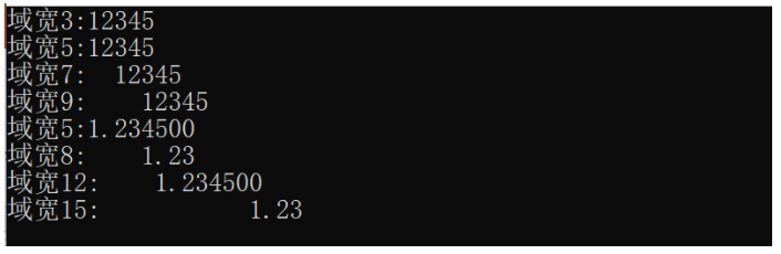 - 当数位小于域宽时,右对齐打印。若大于域宽,按实际位数打印。
