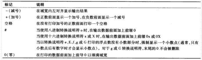 - 标记'0':* 在打印的数据前面加上前导0以填满域宽。